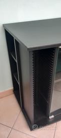 Mobile nero laminato in buonissime condizioni con rotelle, porta cd integrato ed anta in vetro. È molto capiente e può portare numerosi CD. Profondità max 49, larghezza 84 e altezza 73. Presenta solo due leggere scheggiature in un punto nella parte bassa come da foto. Ritiro in loco