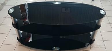 mobile porta tv in cristallo piedi in alluminio satinato