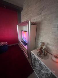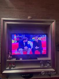 Mobile porta tv sospeso o da appoggio con cornice in foglia d argento e profili bianco lucido 120 cm x 115 cm misure interne 150 cm x 146 cm misure esterne