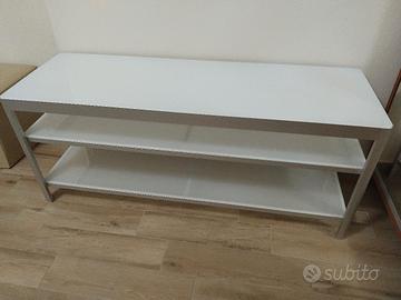 mobile porta tv in ottimo stato in struttura in alluminio e ripiani in vetro, misure: h50cm. larghezza.120cm. profondità 40cm.il ritiro è a carico dell'acquirente