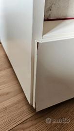 Vendo mobile porta TV bianco usato ma in buono stato (Come da foto). Mobile di qualità, con qualche segno dovuto a viaggi e traslochi – sistemabile