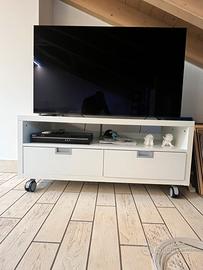 Mobile porta TV Colore BIANCO misure 120x60x55 Dotato di rotelle con freno. PREZZO TRATTABILE PER URGENZA