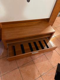 Mobile porta Tv in ottime condizioni. Molto Robusto. Larghezza 156 cm, altezza da terra 141 cm. Con cassetto porta VHS adattabile a Dvd . Laterali con porta Cd/DVD. LA Tv può essere appoggiata oppure appesa. Ritirabile solo a casa mia. zona Gallarate Serve almeno un furgoncino e due persone per il trasporto. Io posso aiutare a caricare. euro 100