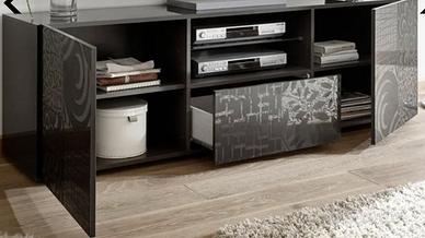 Finitura Grigio laccato lucido con disegni pannelli frontali, molto bello ed elegante, nuovo.