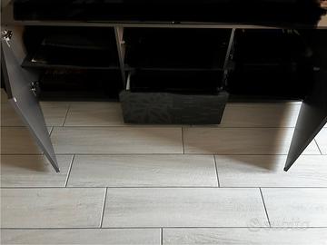 Peso massimo supportato ripiani interni 10 kg. Composto da due ante laterali con doppio ripiano sopra/sotto e doppio ripiano centrale con mensola in vetro porta lettore dvd/decoder.