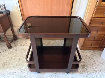 Mobile porta TV retrò su ruote, originale anni ‘60-‘70. Legno scuro, stile mid century modern.