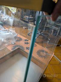Vendo elegante contenitore per vasi da interno con struttura in vetro e profili metallici, dimensioni 50 x 50 x H 75 cm.