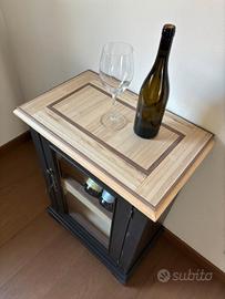 Per una cena o un aperitivo elegante in casa i dettagli d' arredamento sono importanti, come questo mobile portabottiglie elegante e funzionale, con struttura interna progettata per esporre le bottiglie di vino. Il top del mobile è stato completamente rifatto con lo stesso legno utilizzato per la struttura espositiva, ottimo piano d'appoggio per i calici, mentre siete intendi ad atteggiarvi da splendidi con i vostri invitati