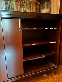 Vendo mobile in legno, composto da vetrina superiore (un vetro ha un angolo sbeccato) e due ante inferiori provviste di chiavi. Prezzo trattabile.