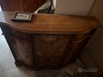 Mobile radica di noce con cassetti e sportello centrale