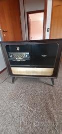 mobile vintage anni 60 in radica con radio funzionante e giradischi da sistemare