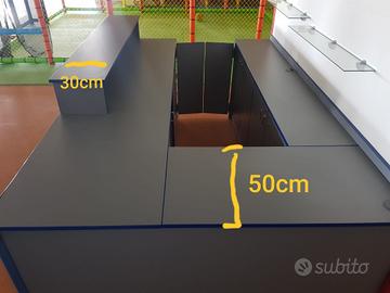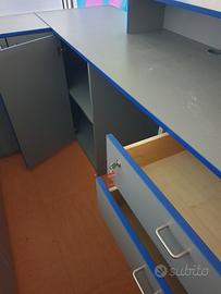 vendo mobile reception ideale per ufficio, negozi, magazzino, è in ottime condizioni usato pochissimo, colore grigio con finiture blu misure come da foto ritiro a mano non spedisco NO PERDITEMPO, grazie