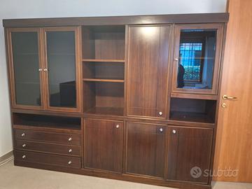 Mobile anni '70 composto da vari cassetti, ante chiuse, ante con vetri e mensole. Mobile usato ed in buone condizioni.