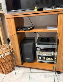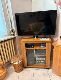 Vendo mobile da salotto Il mobile ha una mensola che si ruota per spostare la visuale della televisione in base alla seduta del divano. Il mobile è dotato di rotelle per essere spostato Sotto presenta uno spazio, tipo vetrina e una mensola per appoggiare i telecomandi.