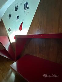 Mobile in noce anni ‘80 retro illuminato con mensole laccate e vetro opalino decorato a mano.