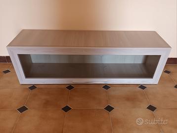 Mobile Rettangolare con Vetrina (apertura con maniglia centrale) per Arredo Saloni e Salotti, in legno chiaro, utile come porta TV o come Pensile. È possibile montare sotto al Mobile dei supporti per rialzo (ad esempio piedi o rotelle per spostare il mobile), oppure montare il Mobile alla parete altezza uomo.