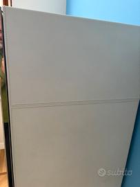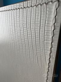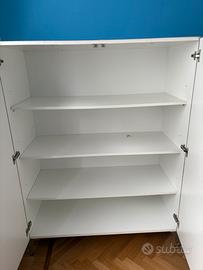 Mobile 158 altezza, 120 cm larghezza, 56 cm profondità, con ripiani, rivestito in pelle bianca. Ideale come buffet per sala pranzo o per riporre biancheria. Ben tenuto.