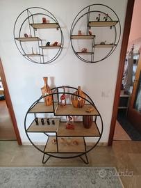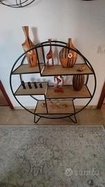 Mobile rotondo porta oggetti in legno e ferro battuto molto bello con due mensole comprese