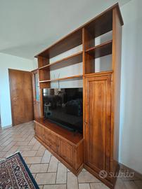 legno noce massello. fatto da falegnameria artigianale. lunghezza cm 244 , altezza cm 240 , profondità colonne cm 38 e profondità base cm 60. Ottimo per televisore 65 pollici. Buone condizioni Alessandra: 333/2957811