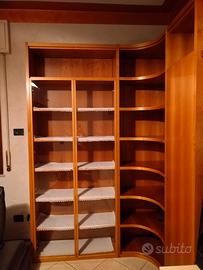Vetrinetta, mobile angolo con ripiani, mobile chiuso con ripiani, mobile basso color panna, due mensole
