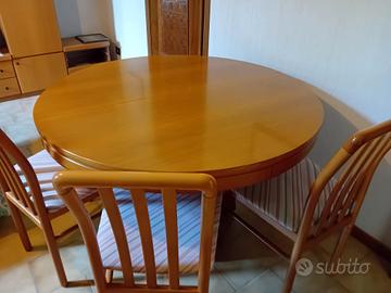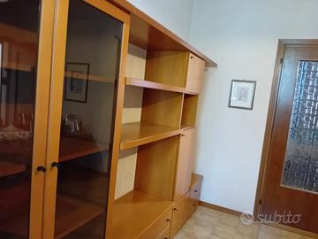 mobile sala in legno lunghezza mt.3.85, altezza mt.1.85 tavolo rotondo in legno allungabile 8 posti con sei sedie