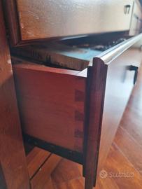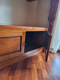 Mobile in legno di mogano massello in vera arte povera. Incastri a coda di rondine. Rivestimento interno in tessuto. Schienali removibili. Il mobile è divisibile in tre parti . Altre foto sono disponibili su richiesta. Altezza massima h 174 cm Larghezza complessiva h 3,37 cm Dettaglio misure su richiesta. Valutazione del mobile fatta da falegname Euro 3,000 ca ( sul nuovo), usato in queste condizioni tra Euro 1,800 e Euro 2,000. Ritiro , smontaggio e trasporto a carico dell'acquirente. Terzo piano con ascensore/ rampa scale larghe. Lecco centro.