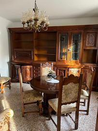 Mobile sala anni 90 adattabile alle diverse esigenze in legno massello con tavolo rotondo allungabile