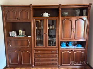 Mobile in legno con vetrinetta in buono stato Notare mancaza di alcune manigliette in basso Misure: altezza 2,30 m x larghezza 3,04 m e profondità 45 cm