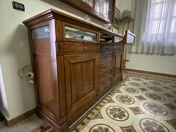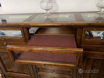 Mobile sala da pranzo composto da due pezzi, il mobile da sale ed una vetrina ad incastro. Il mobile può essere utilizzato anche come arredo da esposizione.