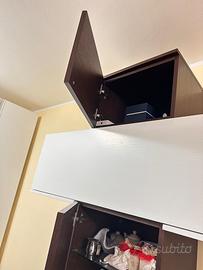Causa trasloco vendo moble sala color wenghé/bianco con ripiani in vetro temperato come da foto e ante a ribalta