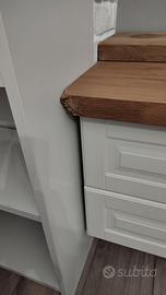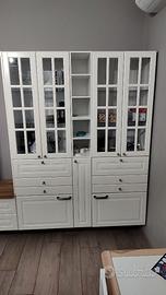 Vendo mobile da sala Ikea con Credenza. Mobile scomponibile in 5/6 parti. Vendo completo di staffe per fissare al muro. Come si può vedere da foto un angolo del piano è rovinato (colpa del cane). Televisore e libreria a sinistra delle foto non è compresa. Chiedere per info su dimensioni o altre foto Date le dimensioni Non spedisco prezzo trattabile