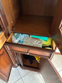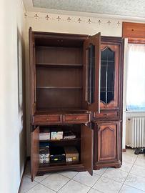 Vendo grande mobile da soggiorno / sala / salotto in legno stile classico vintage con vetrina, vano centrale a giorno, ante e cassetti. Mobile molto capiente e robusto, ideale per salotto, sala da pranzo, taverna o casa di campagna. Caratteristiche: struttura in legno color noce vano centrale aperto con mensole ante e cassetti nella parte inferiore ottime finiture decorative intagliate Vetrinetta Condizioni Ottime, come da foto. Ideale come mobile porta servizi, libri, bicchieri, oggettistica o televisore. Prezzo: 300 € trattabili Ritiro e trasporto a carico dell' acquirente a Piacenza MISURE: H 226 cm L 160 cm P 60 cm é possibile anche separalo in due unità in L da 100 cm una e 60 cm l'altra