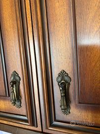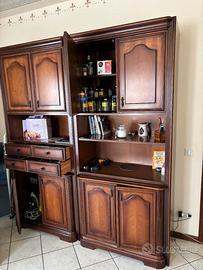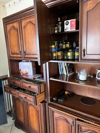 Vendo grande mobile da soggiorno / sala / salotto in legno stile classico vintage, vano centrale a giorno, ante e cassetti. Mobile molto capiente e robusto, ideale per salotto, sala da pranzo, taverna o casa di campagna. Caratteristiche: struttura in legno color noce vano centrale aperto con mensole ante e cassetti nella parte inferiore ottime finiture decorative intagliate Condizioni Ottime, come da foto. Ideale come mobile porta servizi, libri, bicchieri, oggettistica o televisore. Prezzo: 300 € trattabili Ritiro e trasporto a carico dell' acquirente a Piacenza MISURE: H 226 cm L 200 cm P 60 cm é possibile anche separalo in due unità da 100 cm l'una