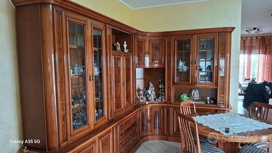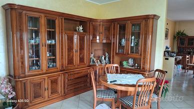 mobile sala in noce ad angolo lato lungo 3,20 Metri lato corto 2,20 metri altezza 2,28 metri profondità 52 cm compreso di tavolo rotondo + 4 sedie RITIRO E SMONTAGGIO A CARICO ACQUIRENTE!!!