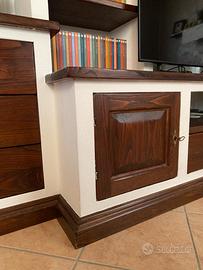 Mobile sala artigianale e personalizzato, tutto in legno massello (castagno) con dettagli eleganti con vetrinette con chiusure a chiave ( vedi foto).