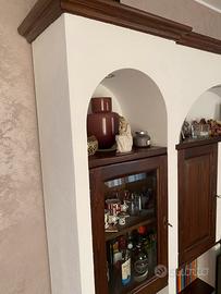 Mobile sala artigianale e personalizzato, tutto in legno massello (castagno) con dettagli eleganti con vetrinette con chiusure a chiave ( vedi foto). Eleganti archi superiori con illuminazione (un faretto in ogni arco). Grande piano centrale porta TV e cassettone molto capiente. Armadietti spaziosi per riporre oggetti, piatti, accessori e due vetrinette per bicchieri, tazzine, oggetti da esposizione. Tutti gli elementi si fondono in un layout attentamente progettato che crea un raffinato punto focale.. Mobile verniciato bianco, personalizzabile e verniciabile nel colore desiderato in autonomia, a pennello o rullo, come per le pareti della casa. Dimensioni: Larghezza:300 cm Altezza: 250 cm Profondità: 38 cm Profondità piano TV: 58 cm Non presenta particolari difetti, qualche segno dovuto all’utilizzo che non compromette minimamente il mobile. Ritiro presso abitazione ad Arluno (MI), smontaggio e trasporto a cura dell’acquirente. Mobile visionabile senza problemi, per ulteriori informazioni e/o foto di dettaglio, non esitate a contattarmi. 😉👋