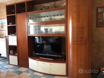 Parete attrezzata color ciliegio e panna in ottime condizioni. Senza televisore. Misure: L m. 3 H m. 2.35 P 43. Ritiro a domicilio