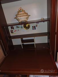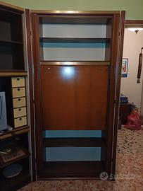 Mobile a parete x sala con due lettini singoli, una scrivania e un tavolo a scomparsa.