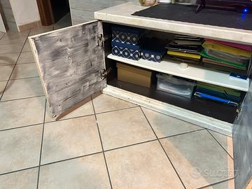 Vendo mobile da soggiorno verniciato con difetto in basso come da foto .3 ante piu un cassettone misura lunghezza 225 ,largo 60 , alto 55. Peso intorno ai 70 80 chili . Prezzo 50 € non trattabili