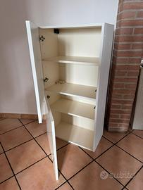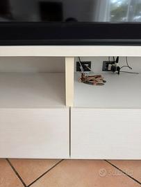 Vendo due mobili per la sala. Il primo (242x58,5 profonditàx51,3) per appoggio tv, con doppio cassetto estraibile e doppio vano inferiore, colore bianco e materiale finto legno. Il secondo (120x33,5x 60,5) da appendere alla parete con doppia mensola e quattro vani porta oggetti. Mobili tenuti bene, non presentano segni particolari se non un leggero “sbiadimento” nella colonna centrale del primo mobile (vedi foto).