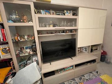 Vendo mobile da soggiorno / parete attrezzata moderna, Mondo Convenienza, in ottime condizioni. Composto da: -colonna guardaroba/contenitore -vani a giorno e chiusi -pensili con ante -base porta TV con cassetti -ripiani e vani contenitori Colore rovere chiaro con ante color bianco panna lucida laccate e vetrinetta, design moderno e molto capiente. Ideale per soggiorno o sala. 📏 Dimensioni indicative: larghezza 3 metri (composizione modulare) ✅ Struttura solida ✅ Ante e cassetti funzionanti ✅ Normali segni di utilizzo 📦 Ritiro a carico dell’acquirente Per qualsiasi informazione o foto aggiuntive contattami.