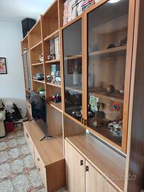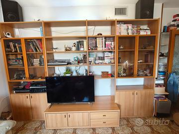 Causa trasloco regalo mobile sala in ottiime condizioni come da foto Lunghezza 94,5 + 152 + 94,5=351 - Altezza=220 - profondità=34 Spessore delle assi=2,5 cm Il mobile è completamente smontabile. Traporto a carico dell'acquirente Libero dal 27 fine Aprile Zona Verona Borgo Venezia
