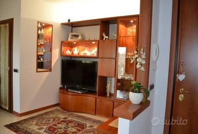 Vendo raffinatissima composizione ad angolo (anche scomponibile in composizione lineare) di fattura artigianale realizzata in ciliegio. Mobile in perfette condizioni. Ante arrotondate, vetri bisellati, ripiani in vetro, illuminazione delle vetrinette.