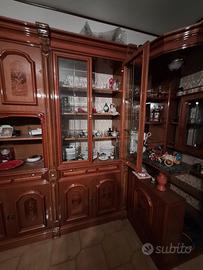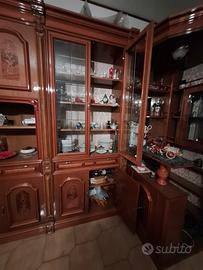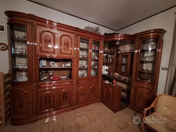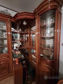 Vendo mobile salotto design classico ed elegante. Composto da plafoniera, 2 vetrinette e 2mobiletti con ante curve, 1 vetrina normale grande, 1 vetrina all'interno della cantina illuminata.