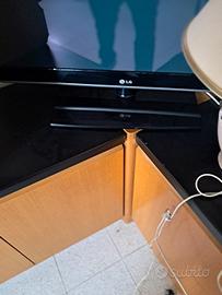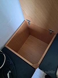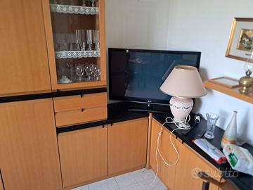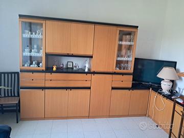 mobile da salotto con vetrina, mensola e vano centrale, scomponibile dimensioni parte alta sinistra 240*215, tutta la sezione sinistra senza il vano 290, sezione destra 145, vano centrale 45*45, il tutto profondo 45 e alto 75 ( esclusa la sezione alta (possibile prendere anche sezioni singole