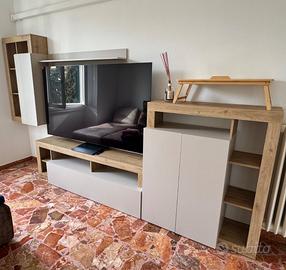 Mobile bellissimo, accostamento di colori: rovere e tortora. Purtroppo per un’emergenza familiare dobbiamo trasferirci e venderlo il prima possibile. Il mobile è appena stato montato, e’ NUOVO. Non è compresa la televisione. Lunghezza: 292 cm Profondità: 42 cm Altezza: 205 cm
