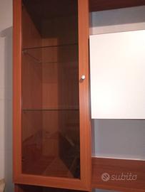 Mobile libreria con vetrine. Misure 240x220x48. Colore bianco/ciliegio.