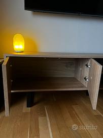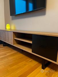 Mobile in legno come nuove, piedi neri. Porta TV 2 ante e 2 cassetti con vano a giorno. L.180xP40xH52 Rovere e nero effetto legno