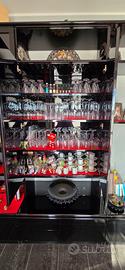 Vendo mobile salotto nero laccato specchio, composto da vani aperti, mensole, una vetrina, 2 ante chiuse con ripiani, 3 cassetti inferiori e 2 antine.