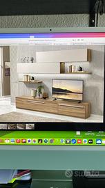 Skema Soggiorno L.270 P.46 H.205 Con 2 Pensili Colore Oro / Orzo